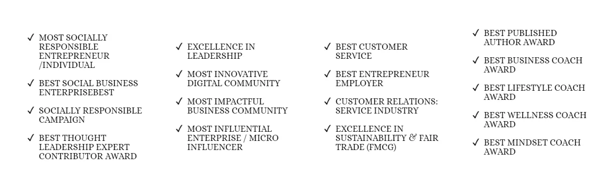 GIVA has helped 100’s of women clients who, albeit having had over 10 years of experience in the industry through their corporate career, did not feel confident to step into their passion and purpose as experts with authority because in their 9-5 role, they were never given the opportunity to be the go-to expert. Below are the award categories that you can choose from to enter yourself this year.